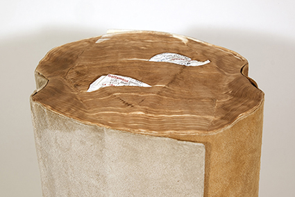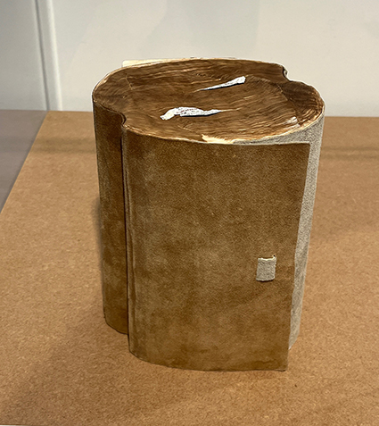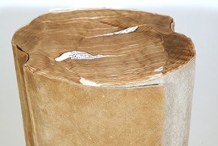 | 城戸みゆき:《摩擦と抱擁》 仏和辞典は、1冊は作家自身のもの、もう1冊は急逝した友人のものでした。ページが重なり合った2冊は、今やどんなに強く引っ張られても決して離れることのない絆で結ばれています。この作品は、悲しみと同時に、二人の深い友情をも物語っています。 |