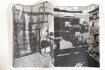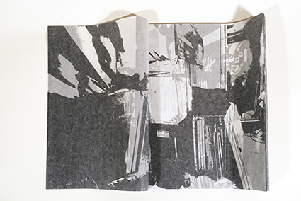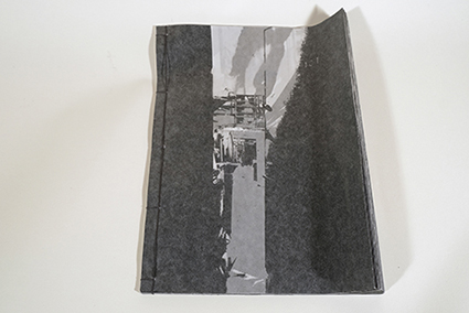 | 作品を作るときや展示をするときは、自分が何をやってみたいか、見る人がどんな体験ができるかなどを考えて、決まった素材や技法や方法ではなく、それを形にできるような方法を考えます。そのときに興味があることについて作ったり、気が向いたことをしたりします。 今回出品する本は自分の印刷工房の写真を薄い紙(グラシン紙)に裏から黒で印刷して和綴じにしたものです。最近は仕事が忙しく、ほぼ工場にいる生活なので、工場の景色を印刷しました。印刷はシルクスクリーン手刷りです。 |