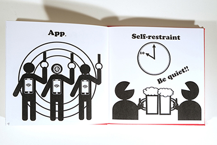 | Mette-Sofie D Ambeck :《Pollution Ephemera(パニック汚染エフェメラ) 》 アンベックの新聞紙に印刷されたジンには、新型コロナウイルス感染症のパンデミック中にイギリスを散策した際に撮影された、捨てられた医療用マスクの写真が掲載されています。彼女はフィルターを使わず、iPhone 11で、すべてのマスクをそのままの姿で撮影しました。これは三友の《COVID-19 パンデミックの風景-2020》》と繋がりますが、彼がこの時期の日常を描写したものは、写真ではなくピクトグラムを通して私たちに伝わってきます。 |