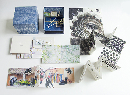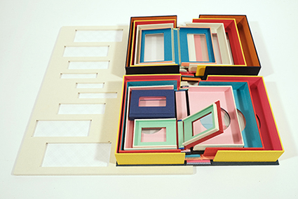 | 松永享子:《The Skin Square, the Pupil Square: Dreams of Scientists (Deluxe Edition)》 それぞれの本には、7人の科学者の夢が詰め込まれています。ここでの夢は、私的な空間として捉えられており、私的な情報と公的な情報が自由に境界を越えて行き交う現代社会において、特異な存在です。7つの独立した世界はそれぞれ、通常の本として読むこともできるだけでなく、展開すると、そこに隠された一つの大きな世界が姿を現します。 |