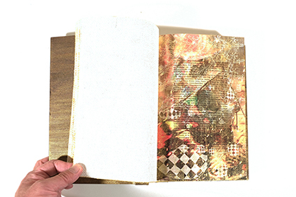| entdecken→40枚のdeck→φαίνω:2025年/紙、布(ジュート他)、木(シナベニア)、トナー(コピー機用トナー)、接着剤(アラビア糊、木工ボンド)・アクリルグアッシュ、オイルステン/26.0×18.5×5.0cm | |||