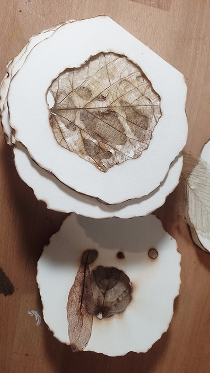 | 木葉雨(落ち葉):2025年/紙、和紙、厚紙、木の葉、銅版画、どんぐりの実、アクリル絵の具、アクリル用メディウム、ボンド・蛇腹折製本、エッチング、アクアチント、雁皮刷り/ | |||