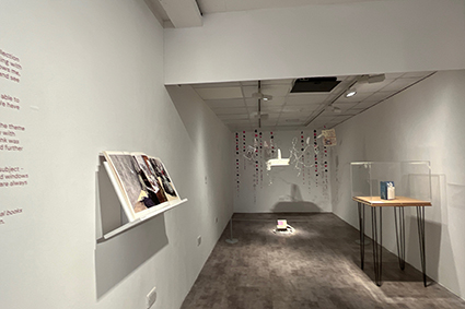この展覧会では、日本側のキュレーターが選んだ18名の作家による各作品に対して、ウインチェスター美術学校が同校のブック・アートコレクションから選んだ作品がそれそれ一対になるように展示が行われています。