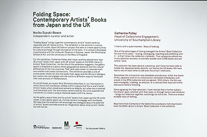 2026年1月30日、ングランド/サウサンプトン大学ウインチェスター美術学校・ウインチェスターギャラリー にて、日英共同国際ブック・アート交流プロジェクトの一環として企画された展覧会「Folding Space(折り込まれていく空間): Japanese and UK Artists’Books」が開幕しkました。以下で展覧会場の画像をご覧いただけます。