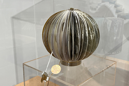 | 中西晴世:《種の旅》 この作品は、紛争や困難に苦しむ遠い地へ、希望の種を届けたいという願いを込めたものです。作品のモチーフはアオギリです。熟すと実が割れ、船型の殻についた種子が現れます。この作品は、小さな船のように海を渡って、遠い地へと旅立つ種子を描いています。 注:広島の原爆投下を生き延びたアオギリは、今では平和の象徴とされています。その強靭な樹容は被爆者に希望を与え、その種子は平和を促進するために世界中に配布されています。 |