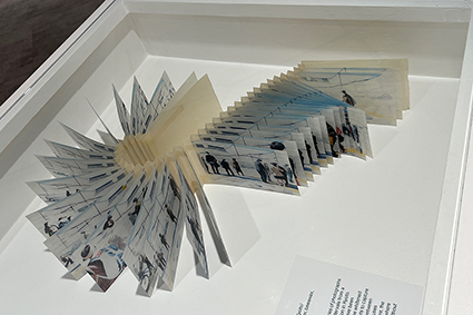 | 中川るな:《同じ月を見ている》 *紙、黄ボール、銀糸、箔、フロッキー、しおり紐・シルクスクリーン、カッティング/2025年 | Tim O'Rifey :《Accidental Journey(偶然の旅》 *紙:印刷、2010年 | 中川るな+Tim O'Rifey |