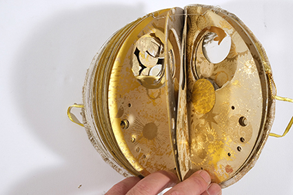 | entdecken→40枚のdeck→φαίνω:2025年/紙、布(ジュート他)、木(シナベニア)、トナー(コピー機用トナー)、接着剤(アラビア糊、木工ボンド)・アクリルグアッシュ、オイルステン/26.0×18.5×5.0cm | |||