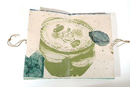| 自然物と人体の一部をモチーフに作品を制作。主にノントキシック銅版画、紙版画などの技法を使用する。木の表皮や葉を表紙に使用する手製本なども制作。又、絵本制作においては、民話好きなので、在住しているスロバキアや近隣の国の民話の再話・挿画を制作。 出品作品について:不規則な形の折丁と穴、折丁に挟まる葉脈を残した葉を重ねることにより、切り株にあいた穴のような、木のうろのような、虫や鳥に穴を開けられたような偶然出来上がる形を、蛇腹本として綴じた作品。 |